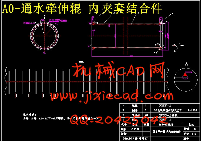 根据受力情况对牵伸辊和牵伸轴进行结构设计,要求结构简单、加工方便、经济可行。牵伸辊的联接的方式采用法兰联接,比内夹套联接结构简单、装配方便。合理设计通水牵伸辊部件,利用分配板使进水和出水流量均匀,充分带走热量。参照现有的七辊牵伸机设备,设计出满足工作要求的牵伸辊,以达到大容量生产涤纶短纤维的目的,满足现代高速纺织机械的发展。