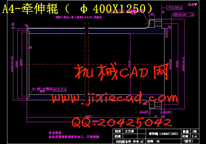 涤纶短纤维后处理设备七辊牵伸机牵伸辊属于牵伸机的工作部分,合理设计将提高七辊牵伸机的性能。牵伸机是纺丝后处理的主要设备之一,根据纺丝的工艺要求来确定牵伸机的数量和功率。本次设计的七辊牵伸机主要是为了提高年产量,从牵伸机组的整体设计出发,按照总牵伸倍数合理布局各级牵伸倍数,按照年产量计算最大牵伸旦数,最大牵伸力;按照牵伸力求出第三牵伸机辊筒的受力情况,依据最大辊筒受力来对辊筒进行强度、刚度校核,及其螺钉的校核。