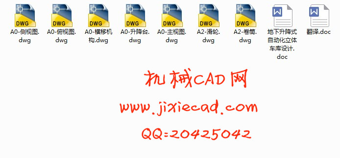 The design is based on the developmrnt according to our country in the last few years real estate industry vigorous development and the common people private vehicle, the private vehicle quantity sharp growth and the vehicle (position) the storehouse establishment serious lag contradiction arises at the historic moment automated garage. The underground elevating automation three-dimensional garage, is the full use plot underground space establishment new garage, its model for single-layer 2 berth. After the garage drops may reside in under completely the ground, the garage surface energy and peripheral merges into one organic whole completely. And each garage is the space-independent, the fluctuation freely, stops (takes) the vehicle to be extremely convenient, quick, is the full use underground space transformation or the constructing security, new, the convenient -like garage. This garage design novel, is unique, is ingenious, usable, may alleviate the plot garage greatly (position) the serious insufficient contradiction. This instruction booklet altogether divides five chapters, the emphatically design calculation steel wire and the block and tackle organization, carried the template, the elevating mechanism, move horizontally the warehousing organization as well as storehouse and so on the main system design calculation.