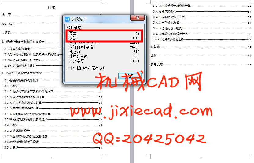 硬币自动分选清点机是一种集自动分选、清点和包装于一体的小型机械。本设计式为了使硬币的处理更加便捷,解决现今社会硬币逐步增大的流通量,以及硬币的处理不便的问题。经对市场产品的调查研究发现,现今已有的硬币分选机构基本都不具备包装功能。在此次的设计中,针对这个缺陷,设计出了以一个螺旋料槽扭动式电磁振动给料机、一个直线料槽往复式电磁振动给料机、三个纵封包装机、一个推杆机构和三个机械手,以及电子计数器结合而成的硬币自动分选清点机构。硬币自动分选清点机利用电磁振动给料机的振动以对硬币进行定向、排列与分选。螺旋料槽扭动式电磁振动给料机在本设计中承担的主要是硬币的定向与排列,直线料槽往复式电磁振动给料机主要运用于硬币的分选,纵封包装机、机械手与推杆机构组成了一个可纵封与横封的包装机构,电子计数器则用于硬币的清点。根据对电磁振动给料机、纵封包装机以及机械手电磁铁的选用和吸力参数设计,对机械手夹紧力参数的设计和对推杆机构的参数设计及强度校核,符合所设计机械的工作要求,通过这些局部设计计算,证明了硬币自动分选清点机的设计理论是可行的。以它的实用性,将比其他的硬币分选机构有更高的效率。
