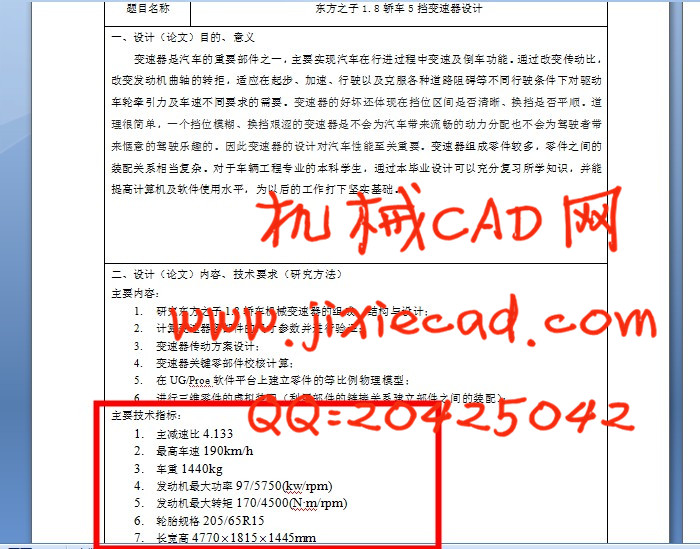 This design study of the two-axis five-speed manual transmission, the transmission works are described in detail, transmission gears and shafts of the gear to do the detailed design calculations, and make a strength check, carried out a number of standard parts selection . Transmission of the transmission design and about the transmission of each component material selection.