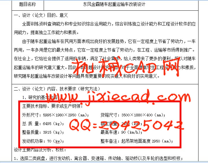 摘要 I随车起重运输车属于臂架型起重装置,集起重和运输于一体,结构紧凑、易于操作,不仅节省劳动力,而且极大的降低了工作强度、提高了工作效率。广泛应用于交通运输、港口和仓库中。