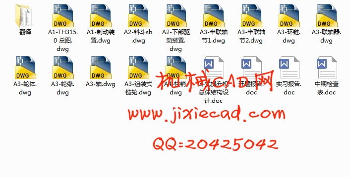 关键词:斗式提升机,料斗,滚筒,牵引构件,驱动装置,张紧装置。