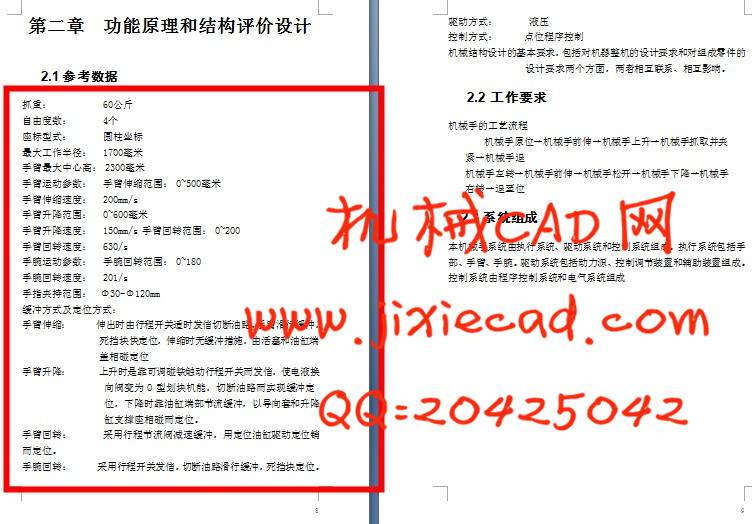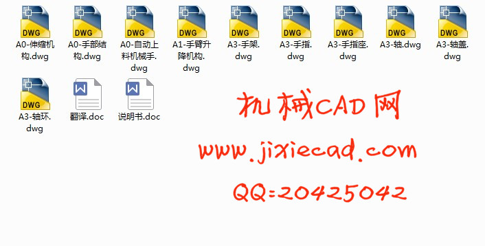 锻压机自动上料机械手的作用是将被加热的坯料从上料位置将热坯料搬运到立式精锻机上锻打,其成品锻件由下料机械手从立式精锻机上取下并送到转换机械手上,转换机械手先把锻件反转 90度成水平位置,由丙烷切割装置将两端切齐,切割完毕运送到车间外面的仓库。该机械手包括执行系统、驱动系统和控制系统,本文主要设计了机械手的执行系统即手部.腕部和臂部的设计,实现了手部的夹持、腕部的回转和臂部的伸缩等功能,用 CAD完成了该机械手的总装图及手部和臂部的绘制,并分析操作该机械手的各种力学参数 ,讨论了其工作空间的情况。同时对其进行动力学分析,得到各传动关节所需的驱动力,得出了最终方案。