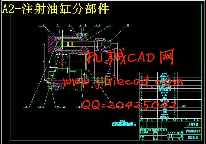 (3)介绍了注射油缸的设计,研究了注射油缸直径、活塞杆直径,包括对其尺寸的计算。