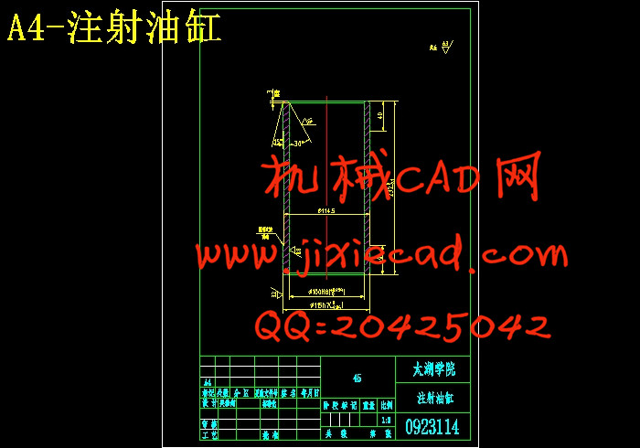 In chapter 3, the paper introduces the design of the injection cylinder, and studies the injection cylinder diameter, also with the diameter of the piston rod, which includes the calculation of its size.