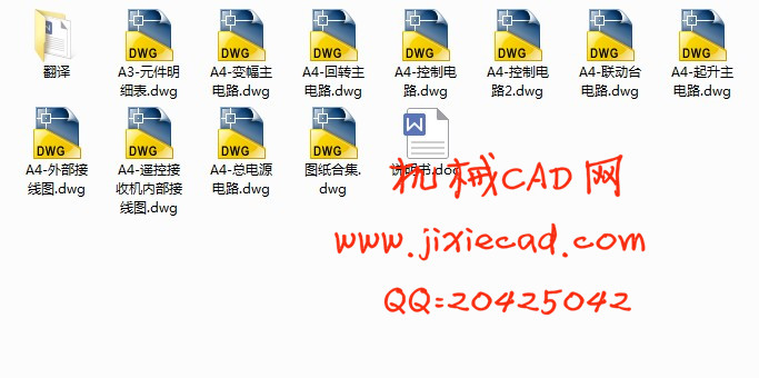 此次毕业设计题目为塔式起重机电气控制系统设计,主要包括起升机构的控制,三速变化的设计,回转机构的绕线电机变速设计,小车变幅双速电机的控制设计,电器元件的选型,控制柜安装布置图,电气接线图的设计等。