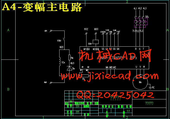 The graduation design for the tower crane electrical control system design, including the lifting mechanism control, three speed change rotary mechanism design, the motor winding gear design, trolley double speed motor control design, electrical components selection, control cabinet arranged diagram, wiring diagram design.