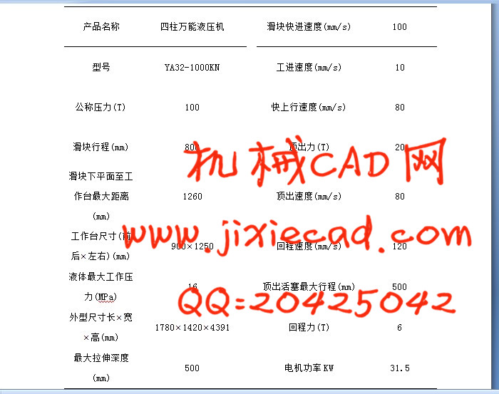 2.1 YA32─100T四柱万能液压机主要参数 3