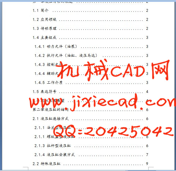 本次设计主要是对液压缸系统的设计方法来进行系统的研究,通过对液压缸建立CAD原型得出了以下研究成果:1.在分析液压缸的基本工作原理上,总结它的主要安装以及工作形式。2.做出其装配图,通过了解装配图的特征,来建立模型。3.结合液压缸的装配CAD系统模型,来开发其系统CAD软件原型系统。4.通过计算的方法来选择需要的液压元件。5.最终对所设计的系统进行检验。6.绘制最终正式的系统图与文件。
