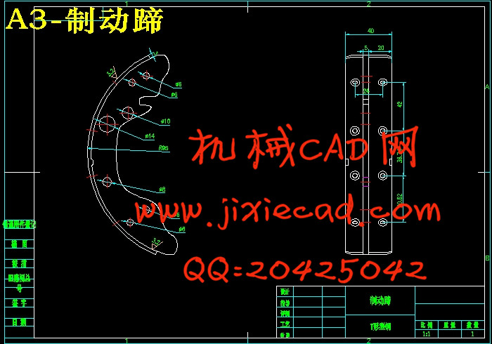 The brake is a deceleration machine part which causes in the machinery to transport the moving parts to stop .The ability of automobile .The braking system is composed of brake and braking actuating mechanisms. Brake is the component of braking system, which is used to produce forces to block the movement of automobile or the movement trend. This design aims at the rear-wheel brake of the CA7160. The break’s type is leading trailing shoe brake. I use the floating shoe as the brake shoe. I also add the parking break in my design. I design the structure of the main parts, the calculation of the brake and the strength calculation of some parts. I also analyze the technique of some parts and the unit assembly. At the end of the article, there is a translation of an English article, which is about ESP.