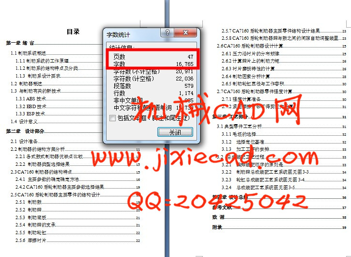 2.4.2 CA7160后轮制动器主要参数选择结果 19