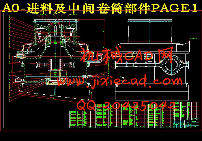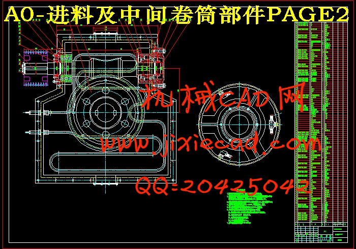 LH9/900拉丝机共有9套卷筒机构,进丝方向第一套承受转矩最大,为了减少设计计算量,只取第一套卷筒机构进行设计计算。每一卷筒机构均有一独立的电机作为儿立动力源。本文对该卷筒机构的传动方案设计,动力电机的选择,卷筒机构中的蜗杆传动及几何参数的计算,主轴的几何参数计算,轴承承载能力和寿命的校核计算,以及冷却系统的选取和布置均作了详细的说明介绍。