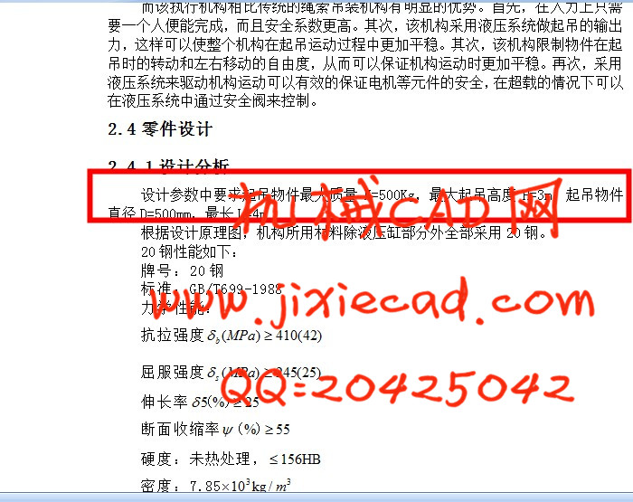 本设计是受日常生活启发而设计,在日常生活中,砍伐的树木在装车时几乎全是靠人力将树木一根一根的抬上车去。费时又费力,而且效率非常低。因此,想设计一种简单的吊装机执行机构来实现这一过程,以机械力替代人力,从而减小人的劳动强度,同时也可以节约更多的成本。该小型吊装机同时可运用在其抱合,起重范围之内的整体物件的起吊安装。设计该小型吊装机综合运用了机械原理,机械设计,理论力学,材料力学等学科知识。其执行起吊机构是这次设计的主题,总体要求执行机构有足够的刚度和强度,实用范围尽量广。