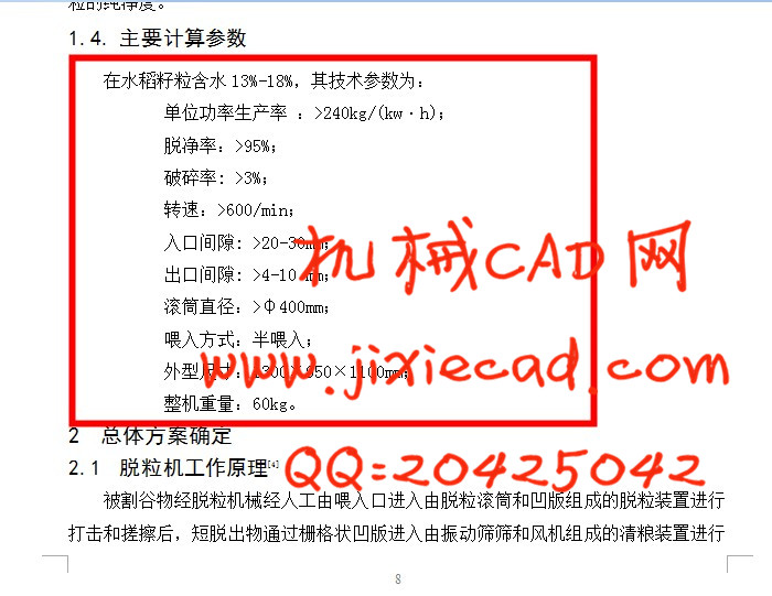 3.3 脱粒滚筒转速计算……………………………………………………………8