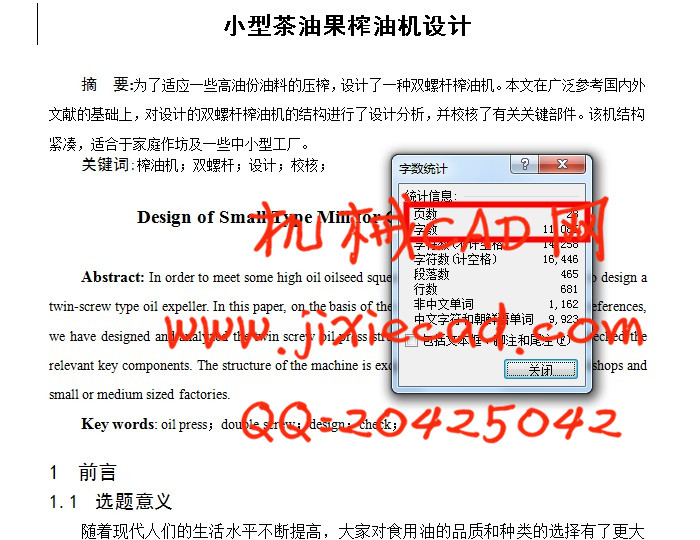 Key words: oil press;double screw;design;check;