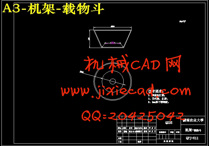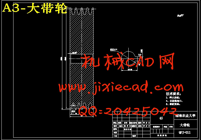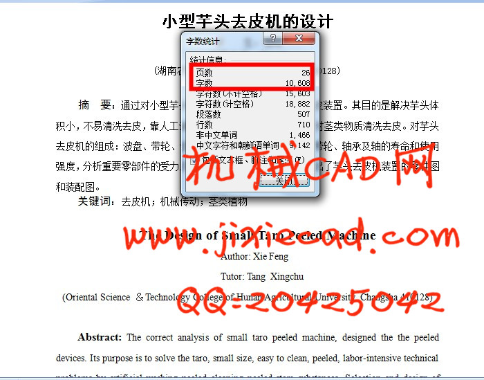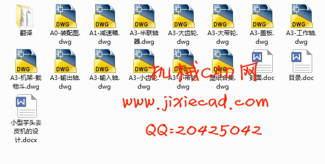 摘 要:通过对小型芋头去皮机的正确分析,设计了去皮装置。其目的是解决芋头体积小,不易清洗去皮,靠人工清洗去皮费力的技术问题主要是对茎类物质清洗去皮。对芋头去皮机的组成:波盘、带轮、齿轮、轴等的选用及设计,校核带轮、轴承及轴的寿命和使用强度,分析重要零部件的受力及载荷分布情况。用AutoCAD画出了芋头去皮机装置的零件图和装配图。
