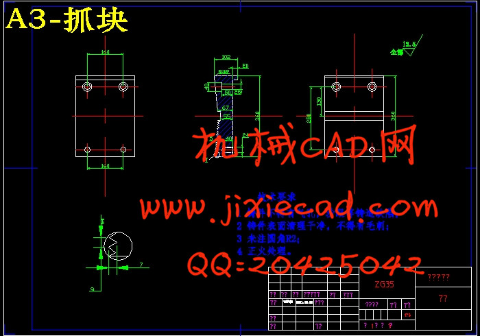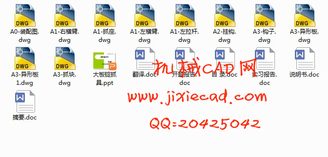 本文是介绍铝合金板抓具的设计过程的说明书。本文对大板锭抓具的设计原理,基本结构和特点,对机械和四连杆结构的设计,机械的维护等方面做了较为详细的介绍。本文共分三个部分,第一部分为总体设计,主要包括设计的基本原理,方案比较,部件设计等。第二部分为技术设计,主要是有关四连杆机构的计算,刚度强度校核等。第三是操作的注意事项和维护保养。