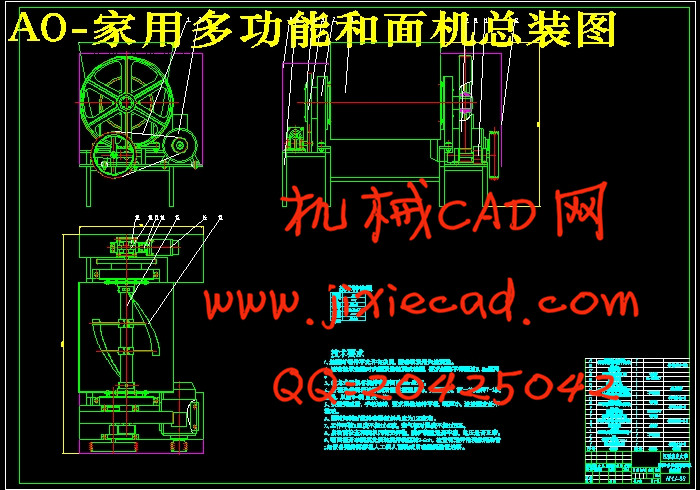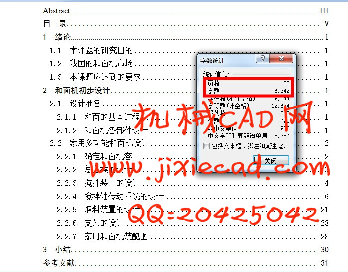 和面机的实质作用就是进行水和面粉的搅拌混合,主要用于年糕、饺子皮、蛋糕、膨化食品、面条、馄饨皮等面食的加工,揉面团的好坏直接影响了面食的口感。本设计中和面机采用双叶片搅拌,和面容量为10kg,适合调制各种面团,搅拌装置选择了双叶片搅拌器,由主电机带动带轮,通过齿轮减速传动给搅拌轴。和面完成后打开步进电机,方便取出面团。本和面机结构简单,用途广泛,大到农村人家打年糕,小到三口之家包饺子。