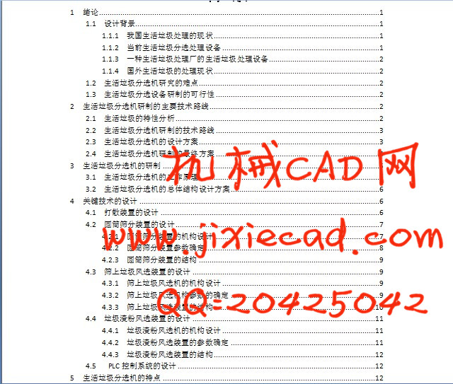 方案二: 该方案采用一体化技术路线,各装置合理布置于箱体内,物料运行流畅;将破碎机设计为电机传动,能划破垃圾包,又不会打烂废旧电池,且打散过程中产生的粉尘不到流的生活垃圾打散装置;将生活垃圾筛分设计为电机及齿轮传动、能分段筛分、有特殊网孔、导料系统、筛分能力大的圆筒筛分装置;将生活垃圾细分设计为筛上垃圾风选装置、筛下垃圾风选装置和垃圾渣粉风选装置;在产品的进料口设计了磁选装置;箱体和支架设计为全封闭式;为简便操作,整个系统实行PLC系统控制。