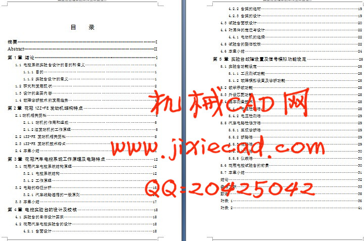 关键词:1ZZ-FE;实验台;设计:教学;故障检测;