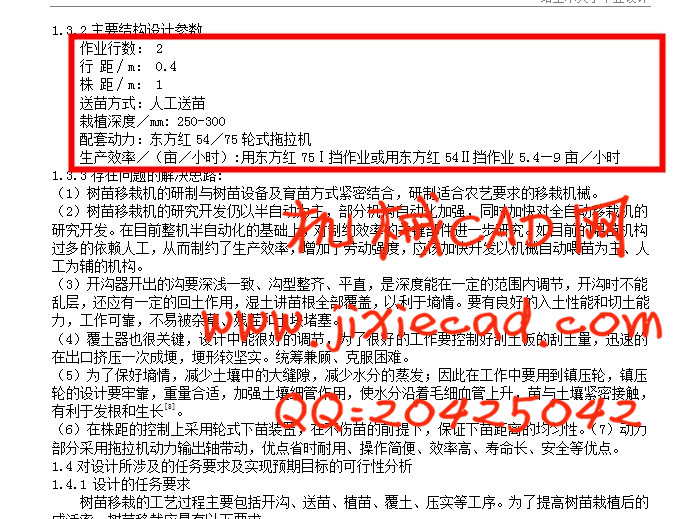 2树苗移栽机的结构说明 3