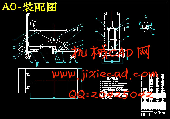 本文所介绍的液压升降台最大载重量是500kg,该升降台由两部分组成:机构本体和液压系统。升降台升降的操作控制是由一套液压系统和液压缸来完成的,而组合而成的液压系统全部放在液压油泵中。液压泵和液压缸都采用标准件,其中液压缸为单作用液压缸,本文首先通过支撑铰架的受力分析详细阐述了要提升起货物,液压缸所需承受的最大压力。接着以之作为根据说明液压泵、液压缸等标准件的选用及型号,并介绍液压泵内部相关液压系统原理以及对液压泵储油量进行核算。此外在强度校核方面,主要通过材料力学知识对铰架以及液压缸作用两端的轴进行强度校核,最后对本升降台进行重量和成本核算。本设计借鉴了大量的资料,采用了许多国家标准,充分的吸收了各行业的宝贵经验。