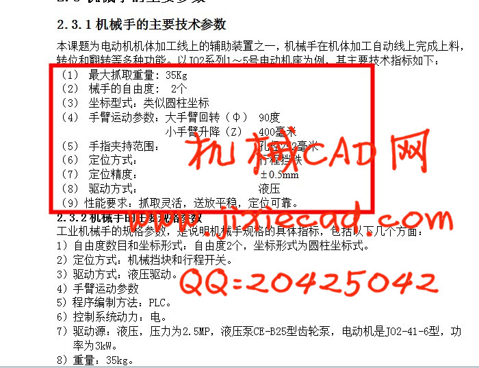 2.3.1 机械手的主要技术参数.....................................................................................................9