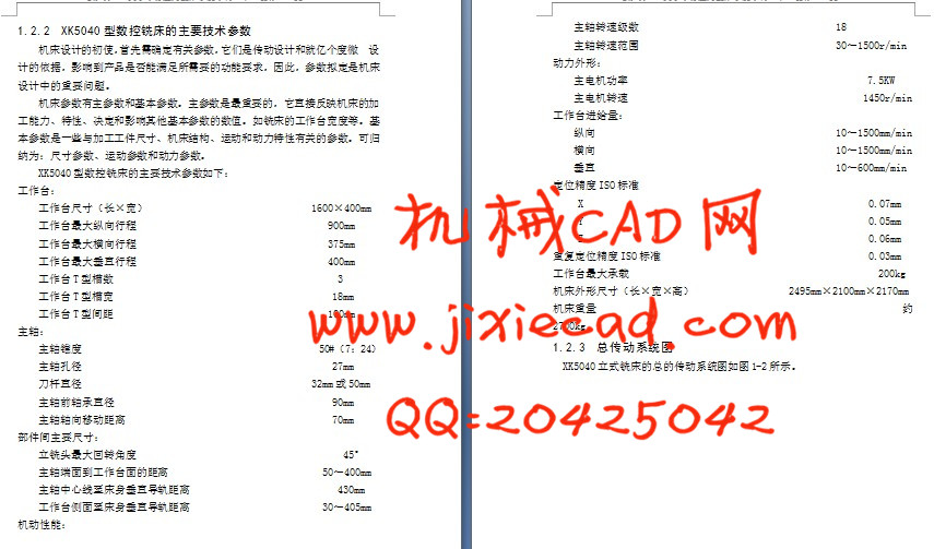 1.2 XK5040型数控铣床的总体布局主要技术参数及总传动系统图 1