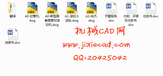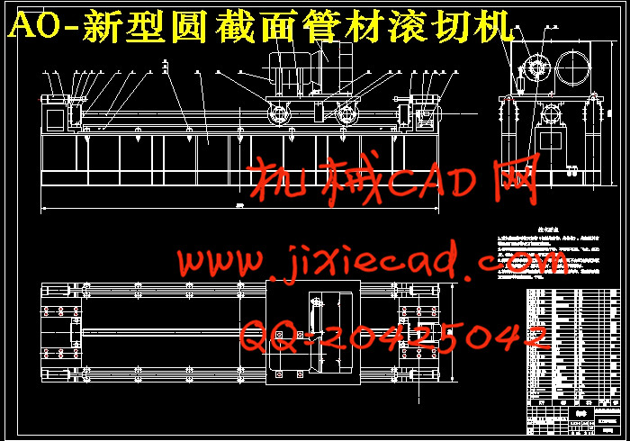 My design is section CAM tubular steel rolling cutting machine, get online cut off the work of principle is to use the wedge with three of the disc roll-cut blade even installed in frame on, cutter head frame is driven gear, gear rotating driven by rack drive, promoting rack and CAM section head into the frame to realize radial feeding, the blade was cut pipe after contact with, in addition to the revolution around the pipe outside, still around their own center axis rotation in pipes, achieving pure rolling, surface in radial feeding system under the function of the pipes cut off gradually. This cut way can realize incision section contour not distortion. Roll-cut type is rotating wedge method in recent years.