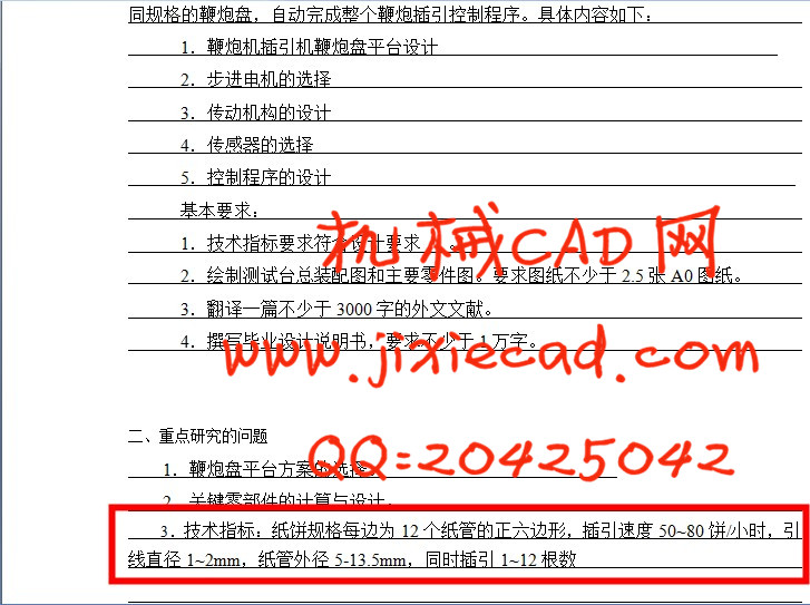 关键词:插引机;鞭炮;Design of Mechanism Firecracker Fuse Inserting