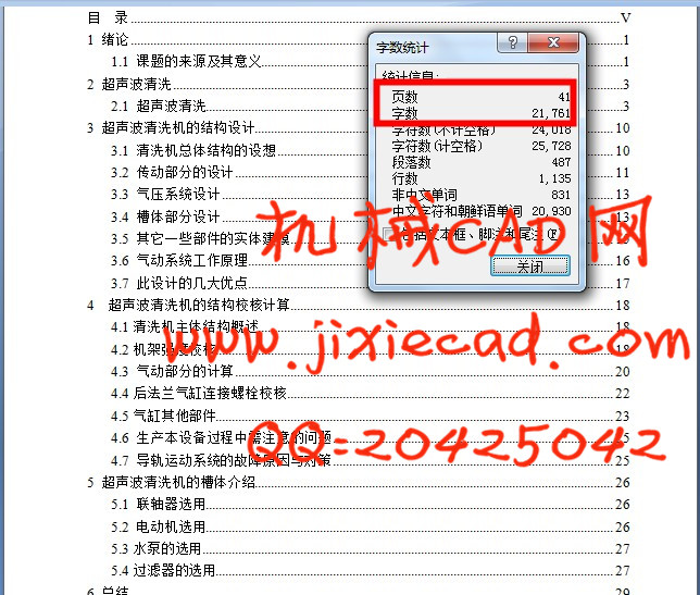 文章主要是围绕超声波清洗机的原理和结构分析、吊运机械手部分的设计及电气部分的设计。通过这篇论文可以很清楚的了解到超声波清洗机的设计过程以及达到的清洗效果。第1章“绪论”中主要介绍了本设计的一些内容,包括课题的来源,意义。第二章“超声波清洗”则是详细阐述了超声波清洗的原理、影响因素、特点及其在国内的发展 。第三章“超声波清洗机的结构设计”中是介绍了清洗机的总体结构,传动设计、前后脚架、脚轮等一些零部件的设计选择。第四章超声波清洗机结构校核主要介绍了机架强度校核。关键词:超声波清洗;结构设计;强度校核;电气元件