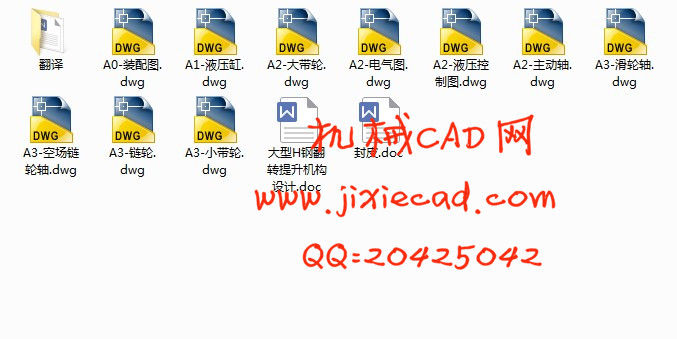 大型H钢翻转提升机构翻转部分采用链式翻转结构,该结构主要由链条、链轮、电动机、皮带传动装置和架体等部分组成。提升部分采用液压式提升机构,本设计完成翻转部分的机械本体及提升部分的液压系统设计。解决设计方案的确定,翻转机构的设计,提升机构的设计,以及两者的相互协调和运行平稳。