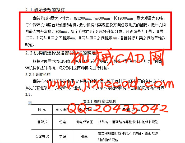 根据生产中钢的尺寸,设计出适当尺寸的翻转机构。在H钢翻转过程中,需考虑到传动传动装置的磨损,变松以及如何改善这种情况,另需注意各部件间的润滑,确定H钢提升的方式。本设计的提升机构用于H钢的提升,工业上要求物料输送过程的平稳高效,同时要使所占用的空间尽可能小,以减小生产成本。