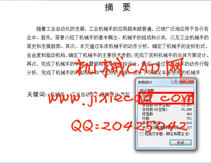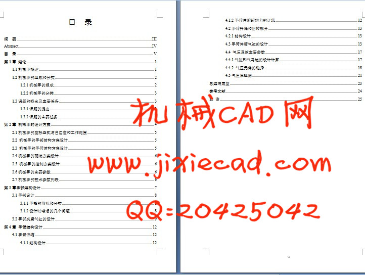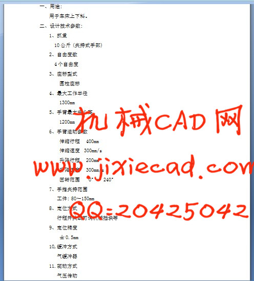 随着工业自动化的发展,工业机械手的应用越来越普遍,已被广泛地应用于各行各业中。首先,简要介绍了机械手的基本概念、机械手的组成和分类,以及工业机械手的简史和发展趋势。其次,本文通过车床机械手的动作分析,确定了机械手的坐标形式、自由度和驱动机构,确定了机械手的主要技术参数;完成了送料机械手的总体方案设计。再次,完成了机械手的手部、臂部和机身的结构设计。最后,通过对机械手的动作行程分析,完成了机械手的气缸设计和气元件的选择;设计了可满足车床使用的机械手关键词:机械手 ,工业自动化,结构设计,气缸