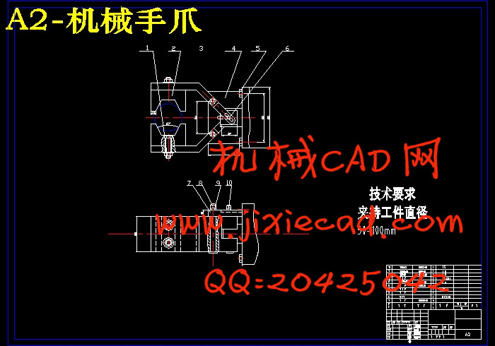 本课题是为普通车床配套而设计的上料机械手。工业机械手是工业生产的必然产物,它是一种模仿人体上肢的部分功能,按照预定要求输送工件或握持工具进行操作的自动化技术设备,对现实工业生产自动化,推动工业生产的进一步发展起着重要的作用。因而具有强大的生命力受到人们的广泛重视和欢迎。实践证明,工业机械手可以代替人手的繁重劳动,显著减轻了工人的劳动强度,改善劳动条件,提高劳动生产率和自动化水平。工业生产中经常出现的笨重工件的搬运和长期频率、单调的操作,采用机械手是有效的。此外,它能在高温、低温、深水、宇宙、放射性和其他有毒、污染环境条件下进行操作,更现实其优越性,有着广泛的发展前途。本课题通过应用autoCAD技术对机械手进行总体方案设计和液压传动原理设计,确定了机械手的坐标形式和自由度,确定了机械手的技术参数。同时,设计了机械手的夹持手部结构,设计了机械手的手腕结构,设计了机械手的手臂结构。他能实际自动上料运动,上料机械手的运动速度是按着满足生产率的要求来设定。