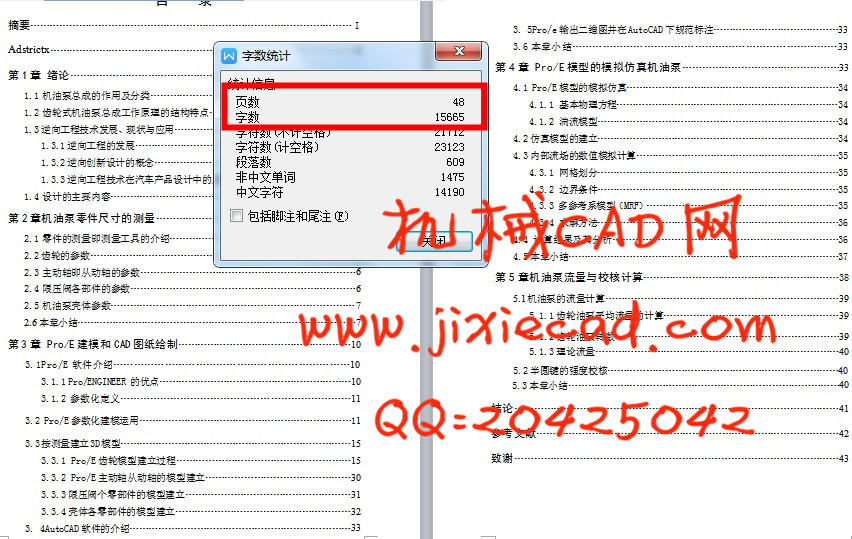 关键词: 发动机齿轮油泵、测量、Pro/E、AutoCAD、逆向设计