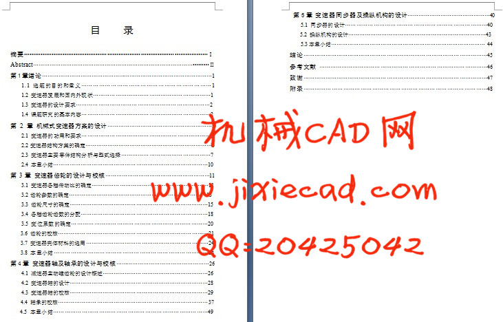 To change the engine used to spread transmission of torque and wheel speed, in order to make car travel at different speeds, transmission should be a number of stalls, including neutral and reverse. Mechanical transmission is a traditional manual transmission car, because of its simple structure, small size, low manufacturing cost, ease of assembly and repair, high transmission efficiency, are still in use. Transmission mechanism as an impotant component, the design of transmission line with the goal of reunification, it is simple and convenient. Transmission performance of the vehicle directly reflects the level of performance, especially fuel economy is good or bad. Therefore, the design of transmission quality has been the focus of competition in the automotive industry.