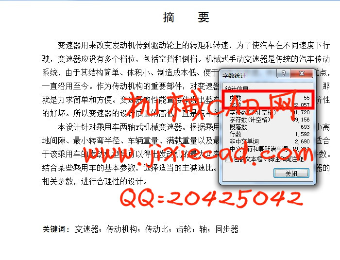 关键词:变速器;传动机构;传动比;齿轮;轴;同步器