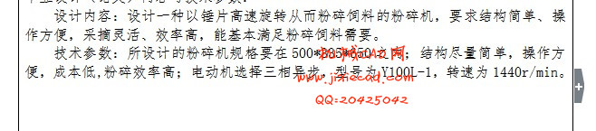 Grinding in the feed the production process is very important procedure, to make full use of raw materials and the animals and plants to play a key role fully absorbed. And this design hammer-shape pulverizer is the most common in a mill, it is a use of high speed rotating hammer piece to shatter feed machines, it has the versatility the wide, high efficiency, crushing of good quality, convenient operation and maintenance, power consumption advantages.The whole design of the crusher of each part to do a detailed narration and calculation, such as the installation of hammer, the calculation and the selection and calculation of the screen piece. Efforts to get the design for easy removal crusher, simple operation, high yield degrees. Of course, it also is not very perfect, but I want to more advanced after hammer-shape pulverizer design and promotion, further theory research have some role.
