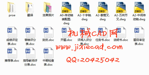 The universal drive shaft of automotive is composed of transmission shaft and cardin joint. The main function of the universal drive shaft is to transmitting torque and rotation movement between two shafts whose relative position is variation in the working process. At the beginning of this century the transmission shaft and cardin joint play an important role in the development of automobile industry. As the development of automobile industry, the automobile demand that the design and verification of transmission shaft and cardin join stricter in the efficiency, intension, durability and noise performance. This graduation design chooses existing production business enterprise of basis is producing the car type(CA1041) of ten thousand to spread to move to equip the conduct and actions design prototype. Under the conditions of the main technical parameters of the given vehicle, installation location of engine, transmission and other major assembly are determined , the structure of the vehicle is analysised, the transmission shaft layout program is determined. Two shaft-three cardin joints is adapted. After determining the transmission options, the right drive shaft and universal joint assembly, intermediate bearing assembly is designed, so that the assembly can be used in normal situations and the life within no failure.