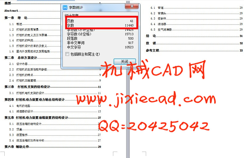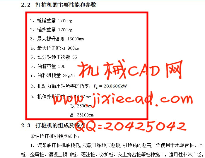 打桩机的机械,机器,设备和系统等统称为“打桩机动力装置”,打桩机动力装置的主要任务是将燃料化学能转化为热能,机械能使打桩机产生推进力保证打桩机工作和提供能量消费的全部机械设备的总合体,并实现能量的转化和分配,以保证打桩机正常工作。总之,打桩机动力装置是所需能量产生,传递及消耗的全部动力机器,机械设备和系统的有机综合体,是打桩机的心脏和动脉。主要用来控制起升机构、支撑机构、回转机构等。本设计打桩机动力装置的组成及主要参数的确定,运行方式、总体选形及稳定性做了一定的介绍与总结。根据打桩机动力装置的技术指标及一些相关参数对该系统进行了方案设计,对其功能和工作原理进行分析初步确定了动力装置的基本结构及主要元件。按照动力装置性能参数进行元件的选择计算,对动力装置的支架的结构进行设计并对相关部分进行验算和校核,最后通过对系统性能的验算和发热校核,满足了该打桩机所要达到的要求。关键字: 打桩机 动力装置 支架