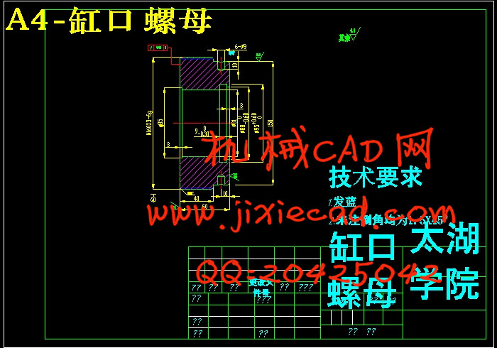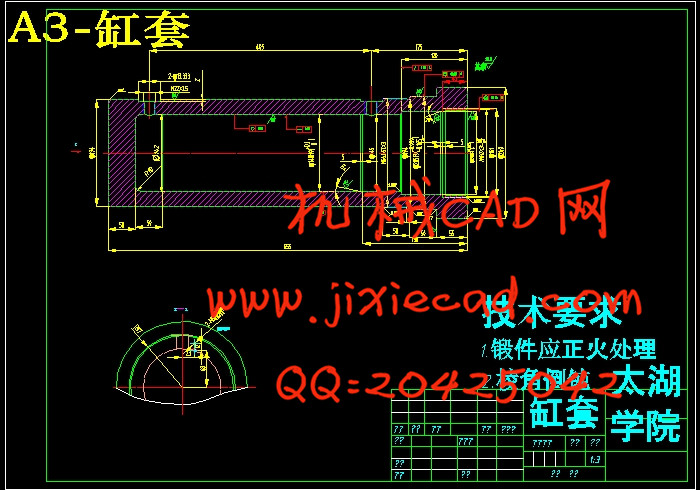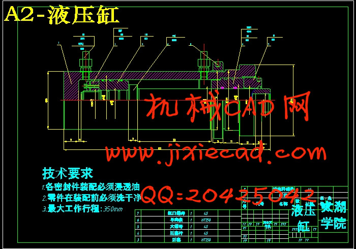 作为现代机械设备实现传动与控制的重要技术手段,液压技术在国民经济各领域得到了广泛运用。作为世界加工中心,我国机械工业在国民经济中的基础作用越来越明显。液压机技术水平的高低直接影响到国家机械工业的发展水平。单柱式液压机是液压机产品的一个重要组成部分, 8000KN以下的小型锻造液压机常采用C型单臂机架,主要用于轴类零件、型材的校正和轴套类零件的装配,也可用于板材的弯曲成型、拉伸等工艺过程。配置一定的附件式模具后可进行粉末压制成型和固型塑料的成型压制,拥有自主的液压机设计技术是使国家机械工业能在世界竞争中取胜的重要保证,对其展开研究有重要的理论和实际意义。本文完成了160KN单柱式液压机本体的设计,并采用二维制图软件AutoCAD对其进行研究。论文提出了160KN单柱式液压机的技术参数,拟定了机器的结构形式,着重对工作缸做了结构设计和数据计算。根据液压机设计理论完成了整体机架结构及主要结构部件的设计与理论计算。对液压机本体的总体结构和关键部件进行了强度计算与分析,主要内容包括:结构中应力集中情况分析,初始设计方案修正,最终获得了满足强度和刚度要求的机架设计。最后利用AutoCAD软件对160KN单柱式液压机总装配图及主要零部件进行了设计,完成了液压机的整体结构设。关键词:液压机;工作缸;强度