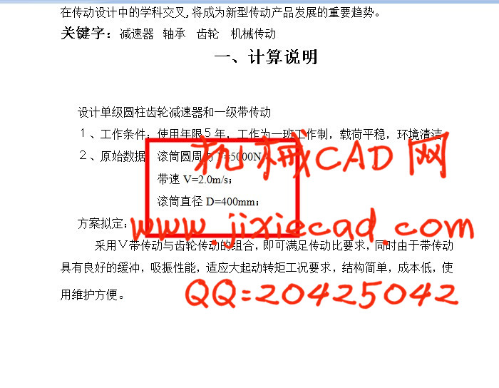 2、原始数据:滚筒圆周力F=5000N;