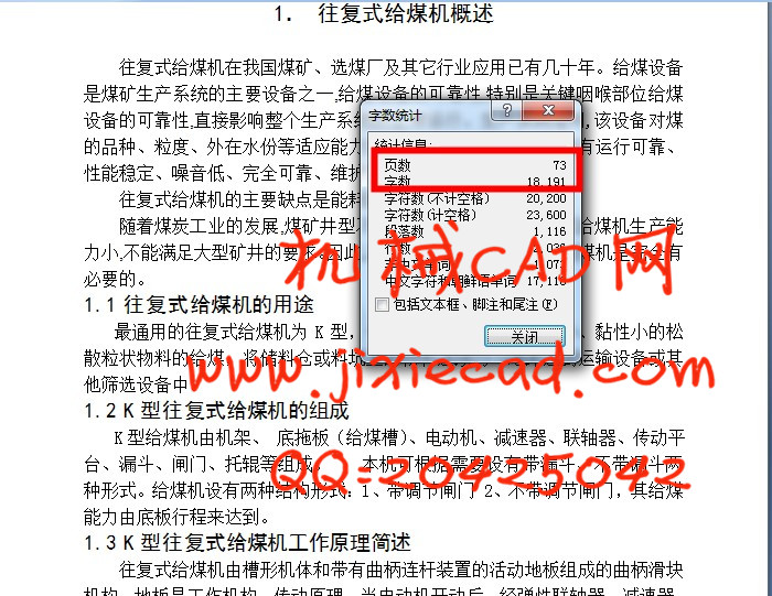 The statement focuses on the study: Reciprocating to the development of coal, the use, composition, working principle and its characteristics, the use of the existing problems and improvement measures, installation and maintenance, and other content. Electric motor power to design reducer. And then design a crank linkage to the coal shafts, drag roller components, and other major components operation