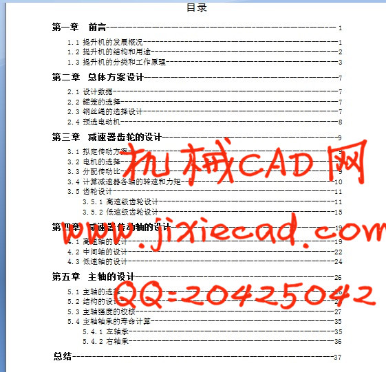 主轴是单绳缠绕式矿井提升机的主要结构,它的作用是:①支撑缠绕提升机钢丝绳的卷筒;②承受各种正常载荷(包括固定载荷和工作载荷);③承受各种积极情况所造成的非常载荷。在非常载荷作用下,主轴部分不应有残余变形。减速器要满足传动比要求,保证提升机正常工作,传动应准确,平稳,可靠。减速器应该在满足强度条件的同时尽可能小型,以减少占用空间。单绳缠绕式矿井提升机的主轴和减速器是其核心部件,要求我们应认真设计,精心制造,这对于确保矿井提升机安全可靠运行,预防和杜绝故障及事故的发生,也具有十分重要的意义。