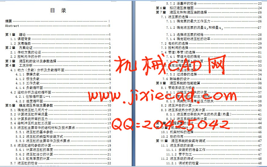 7.1.4 确定驱动液压缸的功率·····································28