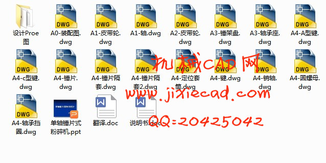 锤片式粉碎机是饲料加工机械的四大主机之一,是饲料生产必要的设备之一,其性能对饲料厂的节能降耗意义重大。分析了锤片式粉碎机的结构特点,设计出满足要求的锤片式粉碎机。建立了锤片式粉碎机转子的离散化模型,利用ADAMS软件术对锤片对称交错排列形式的粉碎机转子进行动力学仿真分析,得到了与实际情况相近的结论。仿真结果表明,锤片对称交错排列转子的平衡性较好,其中交错排列转子两端轴承承载情况相近,转子稳定性好。转子是锤片式粉碎机的主要工作部件。利用Pro/E对锤片式粉碎机转子中的各零件进行三维建模、虚拟装配、模型分析和动态仿真。设计者可以充分利用Pro/E单一数据库管理技术,通过改变尺寸参数来方便地修改和更新零件,还可以直观地观察和分析转子的外形、零件间的相互位置关系和运动状态。关键词:振动;仿真;锤片式粉碎机; Pro/E;转子;三维建模