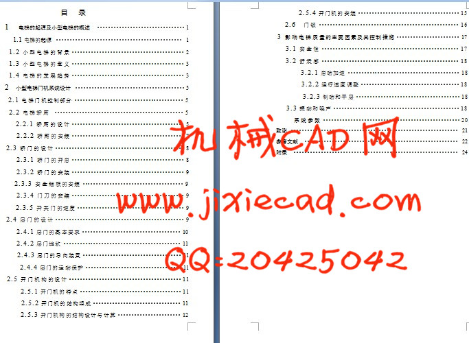 多层建筑的小型电梯门机系统设计说明书