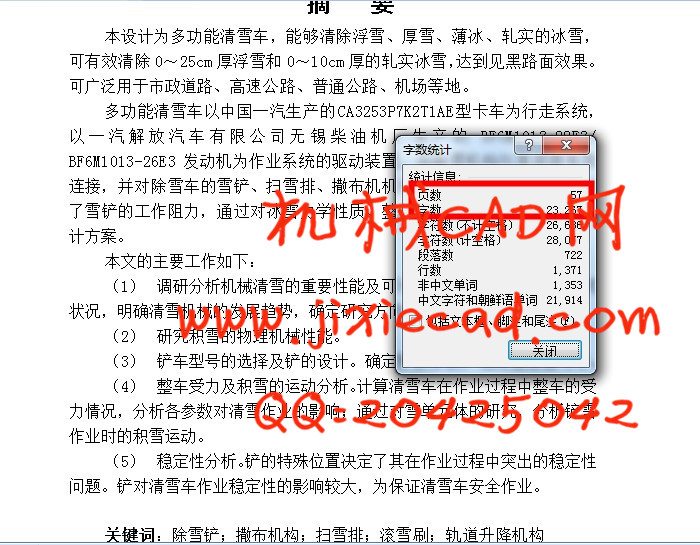 (1) 调研分析机械清雪的重要性能及可行性。结合国内外目前的研究状况,明确清雪机械的发展趋势,确定研究方向。